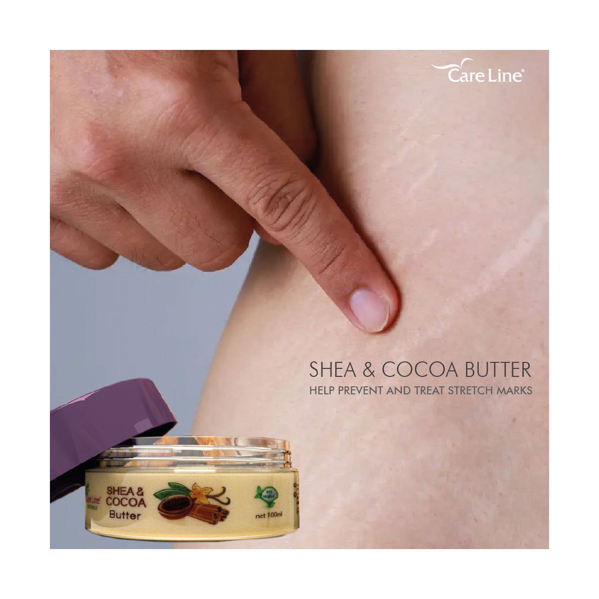 Natural Stretch Mark Care: Safe and soothing for use during pregnancy and weight fluctuations.