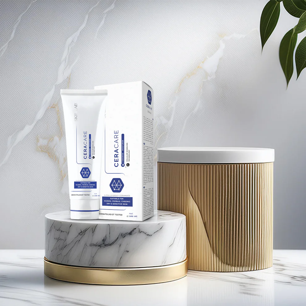 Our Ceracare moisturizer is formulated to deliver visible and long-lasting protection, harnessing the a combination of the both natural and chemical ceramides to reintroduce moisture back into the skin and protect the skin barrier from future dryness.